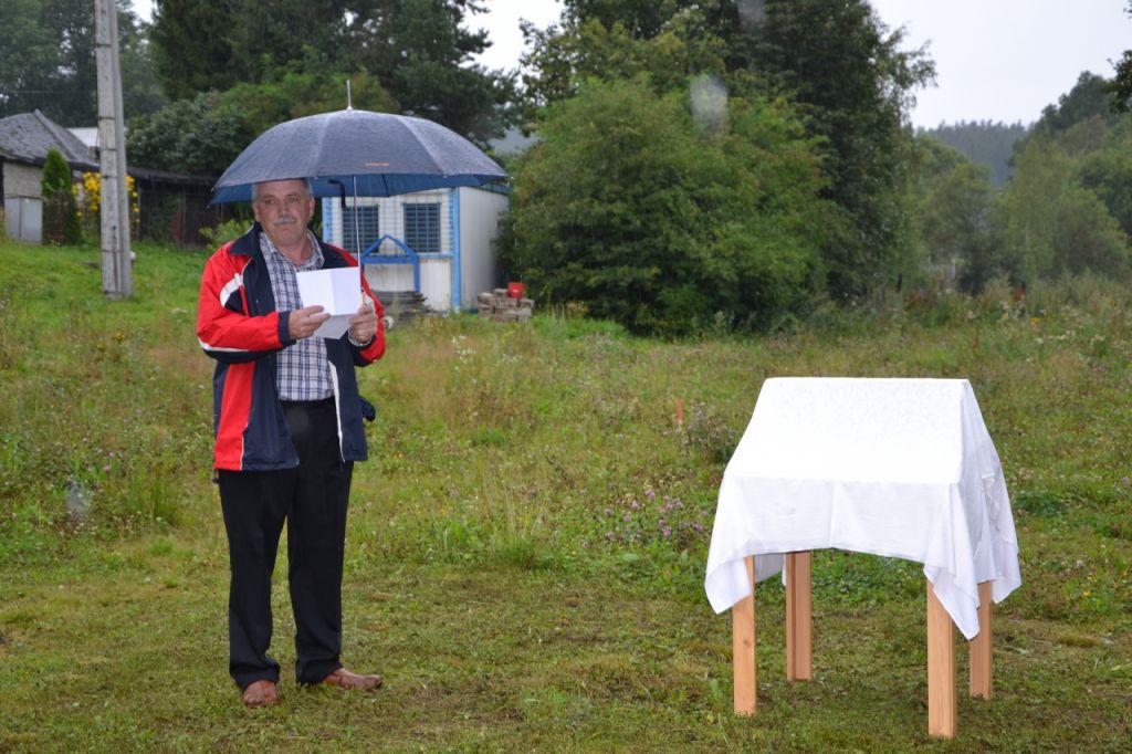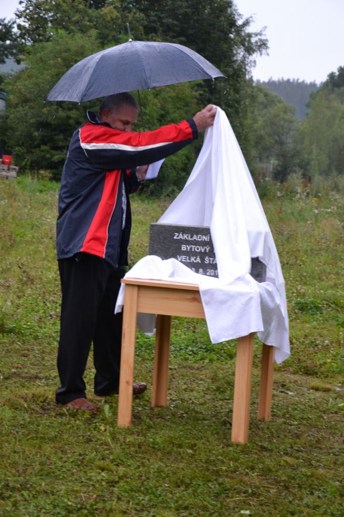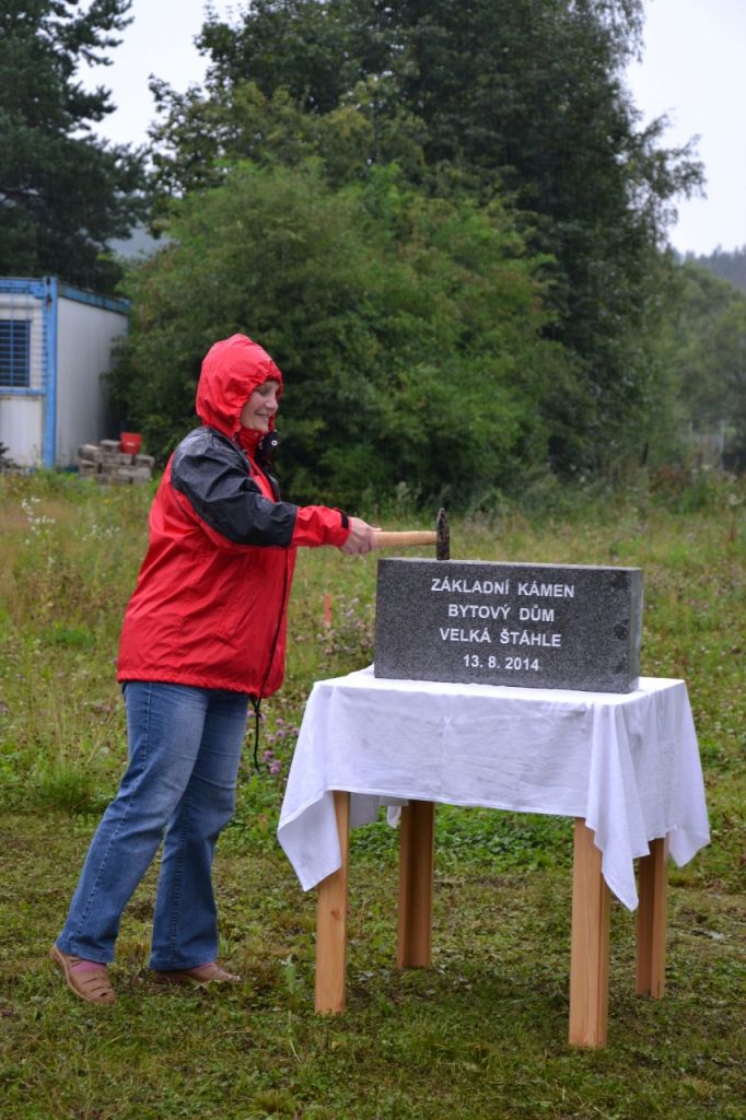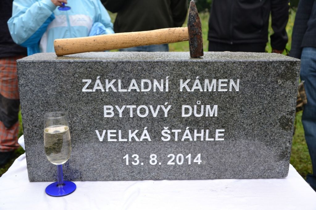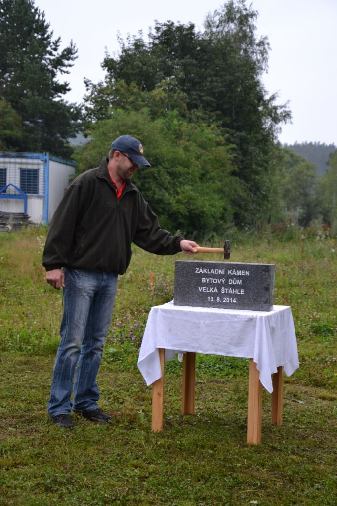 Ve středu 13. srpna 2014 se sešlo zastupitelstvo obce, aby poklepali na základní kámen bytového domu a popřáli mu tak dobrý start. Přestože počasí nepřálo, došli se podívat i někteří obyvatelé obce.